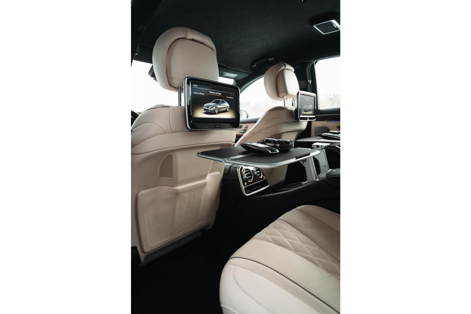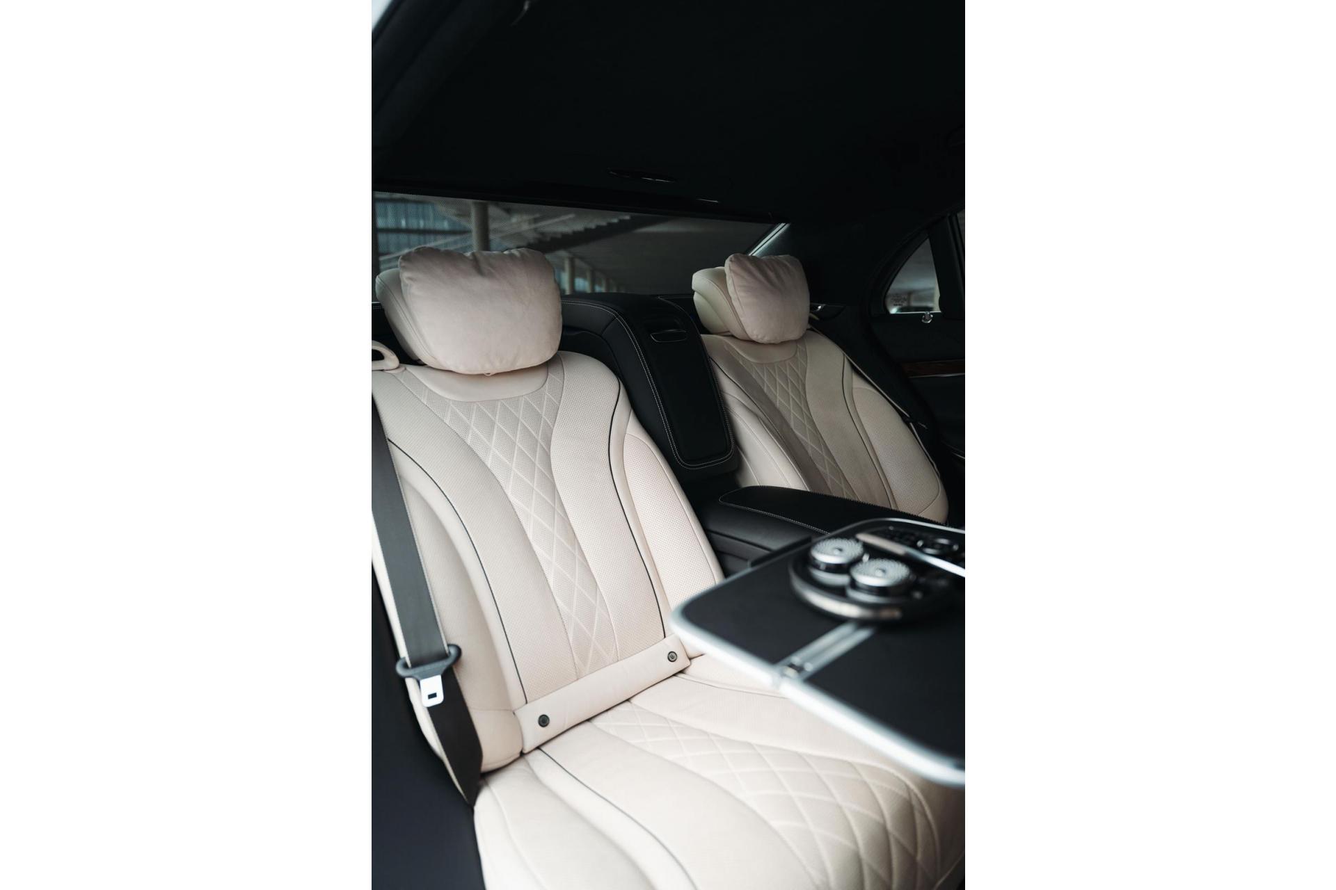 Mercedes Classe S 500 Long Edition Maybach, motorisée par le prestigieux V8 4.7L bi-turbo développant 455 chevaux, alliant confort absolu, performances et technologie de pointe.